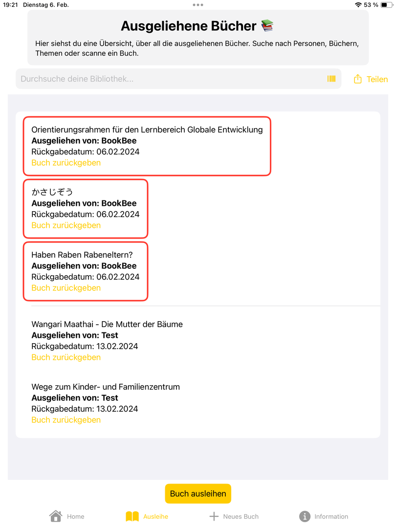 Übersicht über alle Ausleihen